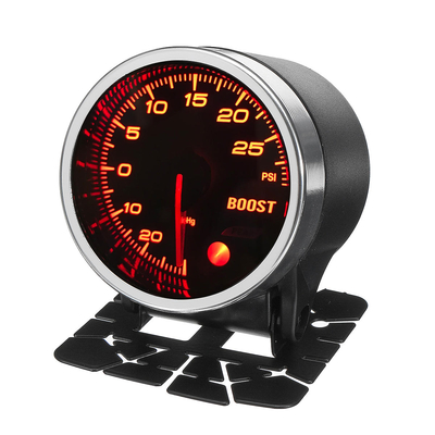 La description 12V 2 52mm voiture Turbo Boost manomètre LED affichage 10 couleur visage noir Spécification: Numéro du modèle: B45235 Nom du produit: 2 52mm Boost Gauge Matériel: aluminium Couleur du boîtier: Argent Couleur du Visage: Noir Couleur de la lunette: Chrome Tension: 12 VDiamètre Taille: 2 (52mm) Unité: PSIPlage de lecture: -30 ~ 30PSIStyle: Lecture à laiguille lumineuse rouge Fonctionnalités: Jauge de diamètre -2 (52mm).- Cadran noir lorsque le contact est coupé.-10 couleurs de rétroéclairage peuvent être sélectionnées, et il peut mémoriser le réglage en mode jour et nuit.-La luminosité peut être sélectionnée à 6 niveaux différents et peut mémoriser le réglage en mode jour et nuit.-3 types de sonnerie peuvent être sélectionnés.-4 niveaux de sonnerie peuvent être sélectionnés.-5 différentes cérémonies ouvertes peuvent être sélectionnées.-Une valeur davertissement (arbitraire) peut être définie et lavertisseur sonore peut être sélectionné parmi trois variations ou éteint.-Les données obtenues pendant la conduite (valeur de crête et valeur davertissement) peuvent être stockées et la valeur de crête peut être révisée et effacée.-Le verre plat, léchelle haute définition et le pointeur long et étroit fournissent une indication précise et une grande visibilité.-Un moteur pas à pas sans balais est utilisé pour permettre une réponse fluide et instantanée à la conduite sportive de haute performance. Fonctionnement commun des boutons:1. Il y a un bouton à l’arrière de la jauge. Ils serv