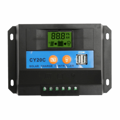 La description: 20A 12V/24V LCD Panneau Contrôleur de Charge Solaire Batterie Régulateur Avec 2 Ports USB (Universal Serial Bus) Caractéristiques: Microcontrôleur industriel intégré Grand écran LCD, tous les paramètres réglables Gestion de charge entièrement en 4 étapes PWMProtection intégrée contre les courts-circuits, protection contre les circuits ouverts, protection contre linversion, protection contre les surcharges Protection contre les courants inverses à double mosfet Spécification: Taille: env. 17x 10x 4.6cm/ 6.69x 3.94x 1.81 Tension de la batterie : 12 V/24 V automatique Courant de charge: 20 A Courant de décharge: 20 A Entrée solaire maximale : 50 VCharge flottante : 13, 7 V (par défaut, réglable) Arrêt de décharge : 10, 7 V (par défaut, réglable) Reconnexion de décharge: 12, 6 V (par défaut, réglable) Sortie USB (Universal Serial Bus): 5V/3 A Auto-consommation : 10 m A Température de fonctionnement: -35~+60℃ Le forfait comprend :1 x LCD Panneau de contrôleur de charge solaire Batterie Régulateur 1 manuel dutilisation Photos de détails :