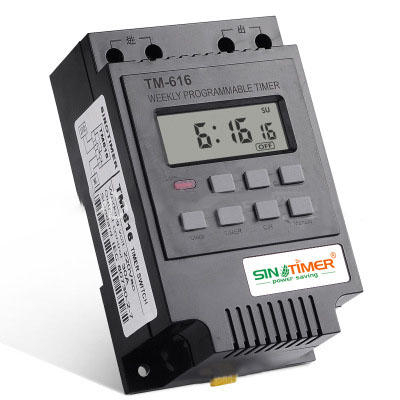 220V 110V 12V 30AMP TM616 Charge de contrôle 7 jours Programmable Digital TIME SWITCH Minuterie de relais Pourquoi choisir Sino Timer TM616? ONE: câblage simple, entrée 220V, sortie 220V, pas besoin de demander à un ingénieur électrique, vous pouvez le faire vous-même à la maison.DEUX: Excellente capacité de charge, jusquà 6500 Watt, 30AMP @ 250 Vac.TROIS: programme facile, tout le monde peut le programmer après quil a lu le manuel juste une fois.QUATRE: Performances stables grâce à la fabrication professinal en économie dénergie depuis 2002. Cinq: Confirmer à lapprobation CE, LVD et EMC passé. Fonctionnalité: * Vous pouvez utiliser le niveau pour mettre en / hors service tous les équipements électriques à une minuterie préréglée* Idéal pour une utilisation domestique dans les cartes DB* 6500 watts / 30 ampères* 24 heures / 7 jours par semaine programmable* Batterie intégrée pour sauvegarder la mémoire (sauvegarder les programmes que vous avez définis) en cas de panne de courant* Correction automatique de lerreur de temps +/- 30 secondes, hebdomadaire* Répéter les programmes avec 17 réglages marche / arrêt, et activer / désactiver manuellement Spécification: Modèle: TM616 Plage de température: -20 ° C + 50 ° CUi: 220 ~ 240V, 50 / 60 Hz Consommation dénergie 4.5 VA (MAX) Voir: LCDContact de commutation: 1 inverseur Programmes: 17 on / off chaque jour ou semaine Hystérésis 2 sec / jour (25 ° C) Mini intervalle: 1min Capacité: 30 (16) 250V ACBlack-out: 60 jours Gamme de minuterie: 1min ~ 168h