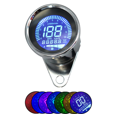 La description:1. affichage numérique LCD2. Jauge de niveau de carburant.3. 7 couleurs LED Rétroéclairage Disponible 4. MP / H et KM / H sont disponibles.5. Jauge à fonctions multiples 4 EN 16. Facile à installer.7. convient pour toutes les motos. Capacité 8. High et pratique.9. Interface de ligne de vitesse mécanique générale. La fonction 10.ODO / TRIP peut être activée sur le bouton noir à l’arrière du compteur. Spécification:LED couleurs de rétroéclairage: 7 couleurs Type: compteur kilométrique moto Tachymètre (0-10000 RPM) Forme: cercle Matériel: fer placage + surface de verre Couleur: Chrome Tension: DC 12 VCompteur de vitesse: KM / H MP / HUnité kilométrique: km Compteur kilométrique: 0-199KM / HDiamètre du miroir: 67mm Diamètre du trou de montage: 8mm / 0.31 Ajustement: Coupe universelle pour toutes les motos. Connexion de fil: Noir = positif Vert = Négatif Bleu Blanc = jauge dhuile Jaune Noir = Signal Tachymètre Réglage:1. Interrupteur de rétroéclairage: appuyez sur le bouton dans létat ODO pendant 3 secondes pour changer la couleur du rétroéclairage 2. Commutateur KM / H MP / H: Appuyez sur le bouton, maintenez-le enfoncé, puis allumez le vélo.Lécran affiche P0000. À ce moment-là, la position 0 clignote, appuyez longuement sur la touche 0 jusquà ce que la position 0 clignote, puis appuyez brièvement pour faire afficher la position des dizaines 1, puis appuyez longuement jusquà ce que des centaines se mettent à clignoter, Et appuyez brièvement 6 fois sur pour afficher 6. Appuyez longuem
