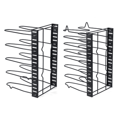 Caractéristiques: Nom: supports de stockage de cuisine Modèle: C55732 Numéro de couche: 5/8 Matériel: Fer Traitement de surface: Pulvérisation La couleur noire Diamètre du fil du produit: 4, 5 mm Taille du produit: 38cmx 21cmx 4cm / 14.96 x 8.27 x 1.57 (appr.) Caractéristique:- Matériau en fer forgé, surface pulvérisée, pas facile à rouiller.- Conception pliante, emballage simple, facile à égoutter.- La position de la carte peut être ajustée en fonction de lépaisseur du pot, librement ajustée.- Facile à utiliser, peut être placé verticalement ou horizontalement, selon votre emplacement.- Facile à utiliser, stable et pas facile à tomber.- Idéal pour la couverture de casserole, la poêle, la planche à découper, etc. Emballage inclus:1 x étagères de rangement de cuisine (pot montré sur limage non inclus) Remarquer: 1.sil vous plaît permettre erreur 1-5mm en raison de la mesure manuelle. veuillez vous assurer que cela ne vous dérange pas avant denchérir. 2. Les couleurs peuvent être différentes selon laffichage de la différence, veuillez comprendre.