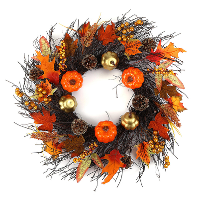 La description 60cm Noël feuilles dérable citrouille vigne guirlande guirlande porte décoration suspendue Spécification: Nom du produit: guirlande de guirlande de Noël Modèle: A48997 Diamètre: 60 cm / 23, 62 Couleur: Multicolore Matériel: anneau de rotin, résine Conseils dutilisation: Accrochez ou placez sur le sol, sans crochets Caractéristiques:-Stylishpretty. Mettez votre porte dentrée se démarquer cette saison des récoltes.-Parfait pour la décoration de Thanksgiving et de Noël. Emballage inclus:1 couronne de Noël.
