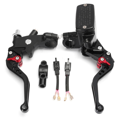spécification Matériel: Alliage daluminium Couleur: gris, noir Taille: comme image montrée Taille dalésage: 17mm / 0.55 Banjo Bolt Taille: 10mm / 0.39 Taille de fil de base de miroir: M10x 1.25 Placement: Gauche, Droite Equipement: Universel pour moto avec guidon de 7/8 po Remarque:1. Linstruction nest pas incluse, linstallation professionnelle est fortement recommandée.2. Sil vous plaît vérifier le tableau de mesure de taille soigneusement avant deffectuer le paiement.3. Sil vous plaît permettre 0, 5-1 pouce de différence en raison de la mesure manuelle. (1 pouce = 2, 54 cm)4. La couleur des éléments réels peut légèrement différente de limage de liste En raison de différents écrans dordinateur, merci pour votre compréhension. Emballage inclus:1 X levier dembrayage à gauche 1 X Maître-cylindre de frein droit 1 X paire de fils de commutateur de frein 1 X support de support de miroir