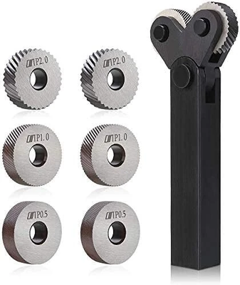 7PCS Knurling Tool Set Steel Lathe Cutter 0.5mm/1mm/2mm Dual Wheel Linear Knurl Patterns Industrial Standard