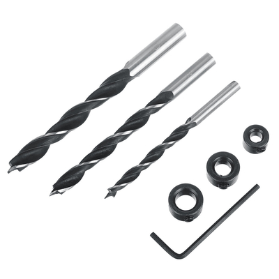 La description:7pcs Pocket Hig Jig Guide de travail du bois Oblique Angle Drill Bit Hole Locator Set Spécification: Taille: 6 mm / 0, 24 po 8 mm / 0, 31 po 10 mm / 0, 4 po Couleur: argent et noir Matériel: alliage daluminium Caractéristiques:-Fait daluminium solide, pas de rouille ou de rupture.-Adaptateur de forets 6/8 / 10mm: répondez à vos différents besoins de forage et changez rapidement dadaptateur.- Pratique à utiliser
