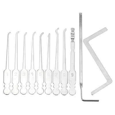 Caractéristiques: Pour être un serrurier vraiment exquis, vous devez avoir les meilleurs outils. Ce verrou avancé de 11 pièces est un bon complément à lensemble des outils pour tout serrurier qui a choisi une serrure plus complexe et a besoin doptions supplémentaires pour laider. Avec cet ensemble, vous obtiendrez sept singles, pour différents angles, ouvrez divers types de serrures, y compris les râteaux, les crochets, le riffle, les diamants et les styles de crochets de diamants. La collection contient des sélections de verrouillage automatique standard et des options de verrouillage spéciales pour la liste de transfert. Ces outils sont élaborés pour vous assurer dêtre faciles à utiliser. Le verrou de 11 pièces avancé est spécialement conçu pour les serrures à petites ou petites clavettes. Le verrou avancé comprend neuf options et deux outils de tension. Les options de conception exquises incluent la plupart du style des râteaux, des crochets, des raves, des diamants et des crochets de diamant. La serrure est idéale pour ouvrir un verrou de voiture et une serrure avec une rainure étroite. Spécification: Forme Couleur: Argent Matériel: Acier inoxydable Dimensions: 3, 54 in x 0, 28 in x 0, 12 in (9 cm x 0, 7 cm x 0, 3 cm) Poids: 0.67 oz (19 g) Le forfait comprend:9 x Choisi sous différents angles.2 x outil de tension Détails des images: