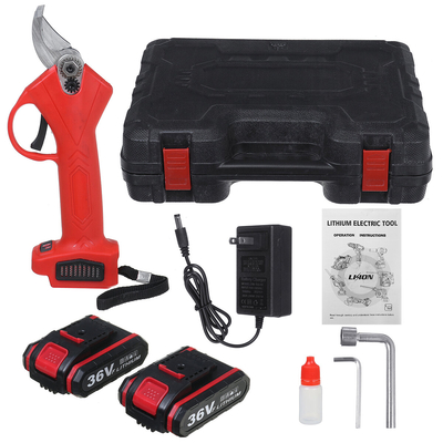 Caractéristiques:- Sécateur rechargeable sans fil pour couper et tailler les branches dans les vergers fruitiers, les vignobles.- Lame, en acier au tungstène, durable.- Batterie au lithium rechargeable de grande capacité 36V pour une utilisation sans fil.- Poignée ergonomique et confortable.- Faible bruit, bonne résistance à la fatigue.- Utilisation flexible, facile à tourner, sûr et fiable, facile à entretenir, pratique à remplacer la batterie et à utiliser.- La qualité de la taille peut répondre aux exigences de lhorticulture. Caractéristiques: Nom: sécateur sans fil Matériaux principaux: PVC, métal Matériau de la lame: acier au tungstène La couleur rouge Tension de la batterie: 36 V Tension de charge: 110-240 V Temps de charge: 1-1, 5 h Temps de travail: 3-4h Pour la puissance de crête: 500 WPuissance nominale: 100 WMax. Coupe: 30 mm Température de travail: -10 ℃ ~ 60 ℃ Noter: Pour la sécurité du transport, le produit ne contient pas dhuile de graissage. Emballage inclus:1 x sécateur 1/2 x Batterie (en option)1 x chargeur 2 x clé1 x manuel de lutilisateur 1 x boîte de rangement en plastique Plus de détails:
