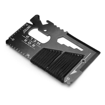 La description: Clé à couteau multifonction 14 en 1 Survie Outils Mini carte La carte de sauvetage PRT a une taille étonnante et 14 fonctions au total. Le produit est un ensemble de combinaison parfaite de fonctions diversifiées de la version condensée, il est beaucoup plus petit, même quune carte de crédit ou une carte de visite, peut être placé dans toutes sortes de portefeuilles ou se cacher parfaitement sur vos vêtements. Fait de qualité PLEIN NOIR Acier inoxydable 425, conception manuelle délicate. De plus, un étui solide et durable est attaché à l’outil multifonctionnel. Spécification: Longueur: 85cm Largeur: 55cmÉpaisseur: 1 mm Matériau du manche: acier Taille: 8, 6 x 5, 5 cm Poids: 46g Mfonction ain: Ouvre-boîte: le crochet suivant, utilisé avec la bouche, peut être ouvert facilement.le couteau: lame tranchante, couper les cordes, laver les fruits coupés proprement plus nest pas un problème.A Tournevis, situé dans la carte de langle (cette position utilisant le principe de la mécanique augmente la force et plus dénergie), la science Angle coupe en un tournevis, raisonnable des modèles couramment utilisés peut vis. Bord droit règle: léchelle métrique, léchelle minimale pour mm. Ouvre-bouteille: convient à la bière, boisson et etc et le bouchon de la bouteille ouverte. Clé hexagonale de positionnement: quatre types différents de clés à six pans, adaptées à une utilisation"idienne de la taille des boulons et des écrous. Vivre clé: à savoir de longues bandes évider la fente, pe