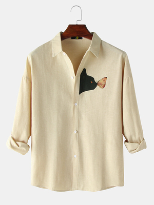La description: Type dajustement: Coupe régulière Coton Encolure: Revers Type de motif: Animal, Dessin animé Scène: Loisir, Maison, Décontracté Saison: Printemps, Été, Automne Taille: XXL, L, S, XL, MManches: Manches Longues Style: Vintage, Décontracté Emballage inclus:1 * chemise