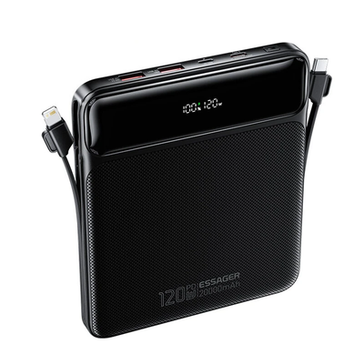 ESSAGER PB905 120W 18.5 Wh 20000m Ah LED Digital Display Power Bank Built-in Type-C+i P Cable External Battery Power Supply with 2 Input & 5 Outputs Support PD2.0 QC3.0 FCP SPC AFC Fast Charging for iPhone 16 Pro 15 14 Pro Max for Huawei Mate XT for XIAOMI