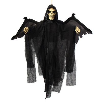 La description:-Squelettes réalistes, grande atmosphère de terreur;-Flashing yeux rouges et misérables cris, avec ses mains modelant, créent une scène dhorreur;-Ces ailes peuvent bouger, les yeux seront brillants;-Utilise 2 piles AAA (non incluses);-Accessoires de spectacle d Halloween;- Meilleur cadeau de jeu pour enfants, enfants ou adultes à Halloween Spécification: Groupe dâge: enfants, adultes Sexe: unisexe Couleur: noir / blanc / gris Matériel: plastique + tissu + élément électronique Batterie: 2 piles AAA (non incluses) Emballage inclus:1 X fantôme suspendu (non compris Batteries)