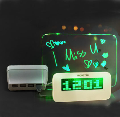 Réveil de tableau de message fluorescent modèle BMarque: HIGHSTARCest Modèle B (4 ports USB (Universal Serial Bus) et câble USB) Modèle A veuillez rechercher ID du produit: 989865 (Pas de ports USB (Universal Serial Bus) et USB (Universal Serial Bus) Câble) Es-tu encore en difficulté doublier des choses? Laissez-vous un massage sur cette carte et réglez lalarme. Cela vous rappellera avec muisc et mots brillants. Voulez-vous donner à quelquun surprise? Êtes-vous inquiet pour le patient oublier les médicaments? Avez-vous besoin dun cadeau décent maintenant? Do tu as besoin Convertisseur USB (Universal Serial Bus) et banque de puissance? APPORTEZ-LE À LA MAISON! :)LES FONCTIONSSurligneur Tableau de mémo Date, Temps, Température Commutable Formats Celsius et Fahrenheit 3 Groups de la fonction Ala Rm Snooze Fête danniversaire Compte à rebours et chronomètre Fonction 16 Chansons de renommée mondiale Demete de calendrier entre 2000 et 209912 heures ou 24 heures Formats 4 PORTS USBSont vos ordinateurs Prises USB (Universal Serial Bus) pas assez? Cette horloge équivaut à un Convertisseur USB (Universal Serial Bus). Cest aussi un banque de puissance pour recharger votre téléphone portable.SURLIGNEURLe paquet viendra avec un surligneur. Un côté est effacer la tête, lautre est pointe du stylo. Cest facile à dessiner et à essuyer. Lorsque ce stylo est épuisé, ne tinquiète pas. Ce Peut être remplacé par surligneur ordinaire.SPÉCIFICATION: Matériel: ABS Mouvement en plastique et électronique Marque: HIGHSTARModèle: B (4 ports USB (Universal Serial Bus) et câble USB) Couleur de la lumière: bleu, vert Alimentation: 3 x AAA / USB (Batterie ne sont pas inclus) Taille: 13