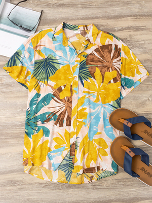 La description:  Type de fermeture: simple boutonnage Collier: col rabattu Couleur jaune Artisanat: impression Type de manchette: manches droites Décoration: Bouton Type dajustement: ajustement Longueur: Regular Coton Occasion: plage, occasionnel, loisirs, plein air, sport Motif: bloc de couleur Saison: été Taille: L, M, S, XLLongueur des manches: manches courtes Style: décontracté, style européen et américain, mode, style hawaà en, loisirsÉpaisseur: régulière     Le forfait comprend 1 * chemises