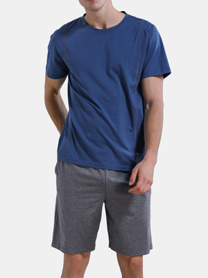 La description:  Type de fermeture: frais généraux Col: col rond Couleur: bleu, marine Décoration: poche Type dajustement: ajustement Longueur: Regular Matériel: Coton, Spandex Saison: printemps, été Taille: L, M, S, XLLongueur des manches: manches courtesÉpaisseur: régulière  Le forfait comprend 1 * vêtements de nuit Plus de détails: