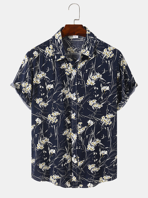 La description:Décoration : bouton Type dajustement: Coupe régulière Matériel: Coton, Rayonne Encolure: Revers Type de motif: plantes. Scène: Loisirs Saison: printemps, été Taille:3XL, 2XL, L, XL, MManches : manches courtes Style: DécontractéÉpaisseur:Régulière Emballage inclus:1 * chemise