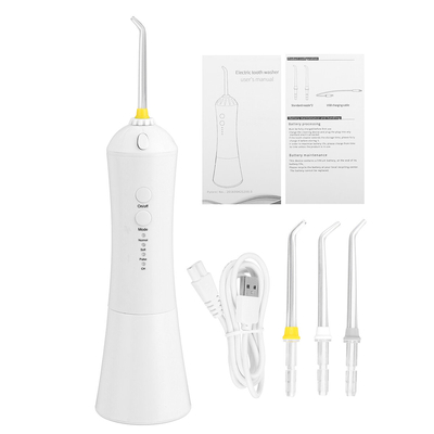 Emballage inclus:1 x irrigateur oral 3 x Nozzl Spree 1 x câble de chargement USBLa description:--- Bouche propre à impulsion haute pression Utilisez un flux dimpulsions haute tension de 3000 battements par minute Nettoyez le contenu des résidus dans la bouche pour vous apporter une haleine fraîche.--- 3 types de modes, 3 Nozzl Spree Répondre à la demande de nettoyer une foule , rendre le nettoyage des dents efficace. Peut être confortable pour allaiter, entre la fente pour la première fois à utiliser et avoir besoin de soins pour les personnes.--- 2 min de protection intelligente de lalimentationÉvitez une utilisation continue pendant une longue période pour brûler la machine.--- Tout l IPX