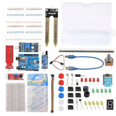 Caractéristiques: Matériel:ABSTaille: environ 12 x 6 cm/4, 72 x 2, 36 pouces Liste des composants :5pcs jaune LED5 pièces vert LED5pcs Rouge LED1 pièces RVB LED1 pièces Thermistance Commutateur dinclinaison 1pcs 2 pièces photorésistance 10pcs fil Dupont mâle à mâle 30 pièces 3 types de résistance Interrupteur à bouton 6 pièces Potentiomètre 1 pièces (10K)1 pièces Active sonnerie 1 pièces Passif Buzzer 1 pièces DHT11 Affichage 1 pièces 1 chiffre 7 segments 1 module de capteur de détection de niveau deau. Module de capteur de son 1 pièces 1 capteur dhumidité du sol.1 module dévitement dobstacles.1 câble USB (Universal Serial Bus).1 planche à pain 1 pièces UN0 R3 CH340 Traits:1. Tous les composants et circuits intégrés sont emballés et étiquetés individuellement, et emballés dans une boîte en plastique suffisamment grande pour vous.2. Compatible avec Arduino UN0 R3.3. Kit de démarrage de grande valeur avec composants électroniques, il peut presque répondre à tous vos besoins.4. Le kit le plus économique basé sur la plate-forme Arduin pour commencer la programmation pour les débutants intéressés.5. tout neuf et de haute qualité.6. Il sagit du kit de démarrage le plus complet que vous puissiez trouver. Le forfait comprend:1 × Kit de démarrage de base