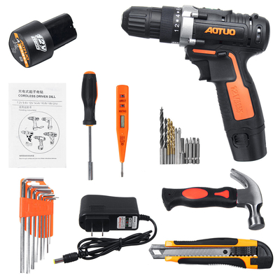 Description du produit Matériau : Acrylonitrile butadiène styrène (ABS) Type: 78 pièces/30 pièces Tension : 12 VCouleur: Orange + noir Vitesse nominale : 750 tr/min Engrenage de couple: 18-25n.m Plage de couple: 18+1 Capacité de serrage: 10 mm Caractéristiques:● Réglage du couple 18 + 1, en fonction du serrage de la vis, ajustez le cercle numérique, plus le réglage numérique est important, plus la force de la machine est élevée● Utilisation polyvalente, perçage du bois, perçage des murs, etc.● Sans fil, facile à utiliser Application: Mur de bois Le forfait comprend: 78 pièces/30 pièces●1 perceuse électrique●2 x Batterie●1 chargeur●1 pile au lithium●1 outils Plus de détails: