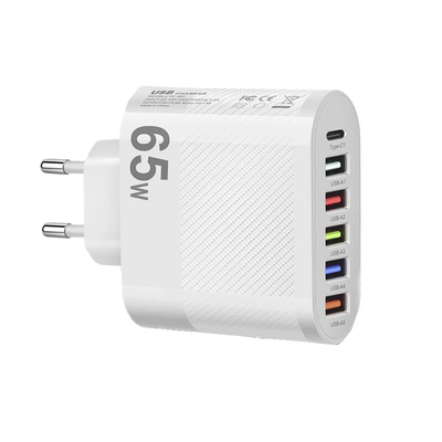 LYK-881 65W 6-PortUSB Charger 5USB-A+Type-C Ast Charging Wall Charger