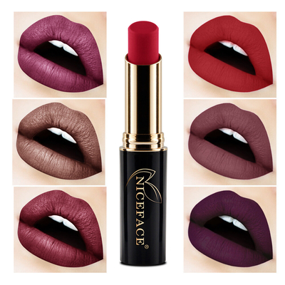 La description: Marque: NICEFACEType darticle: Bâton à lèvres velours Couleur: 24 couleurs pour vous de choisir Quantité: 1 pièce Emballage inclus:1 Pc x Velvet Rouge à lèvres Remarque:1. La couleur réelle de larticle peut être légèrement différente des images montrées sur le site Webcausé par de nombreux facteurs tels que la luminosité de votre moniteur et la luminosité de la lumière.2. Sil vous plaît permettre une légère déviation pour les données de mesure.