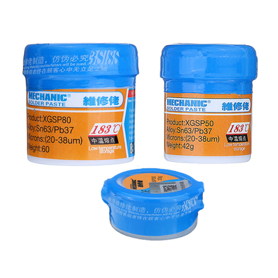 Spécification: Modèle XGSP30XGSP50XGSP80XGSP200XGSP250 Taper ABCDEPoint de fusion 183℃ Poids net 20g 42g 60g 200g 250g Application Capteurs, fils, moteurs, fusibles, coques métalliques, éclairage, composants électroniques, maintenance SMT, implantation de puce BGA, etc. Emballage inclus:1 x Pâte à souder MÉCANIQUEPhotos de détail :