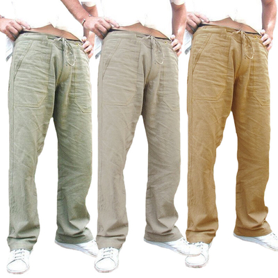 La description: Type darticle: pantalon Type dajustement: Régulier Type de fermeture: Taille élastique Sexe: Hommes Décoration: Pure Color Matériel: Lin Épaisseur: Standard Décoration: Poche, Cordon Style: Décontracté, Mode Saison: printemps, automne, été Type de taille: Mid Rise Couleur: blanc, kaki, noir, bleu Type de pantalon: Pantalon droit Longueur: Long Occasion: loisirs, vie"idienne Le forfait comprend:1 * pantalon Plus de détails: ...
