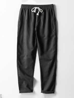 La description: Type darticle: pantalon Type dajustement: Régulier Type de fermeture: Taille élastique Sexe: Hommes Décoration: Pure Color Matériel: Lin Épaisseur: Standard Décoration: Poche, Cordon Style: Décontracté, Mode Saison: printemps, automne, été Type de taille: Mid Rise Couleur: blanc, kaki, noir, bleu Type de pantalon: Pantalon droit Longueur: Long Occasion: loisirs, vie"idienne Le forfait comprend:1 * pantalon Plus de détails: