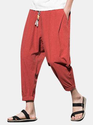 Pantalon Décontracté En Coton Vintage Pour Homme, Lin, Couleur