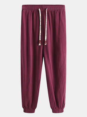 Pantalon Décontracté En Lin De Coton Lâche Fermé De Couleur Unie