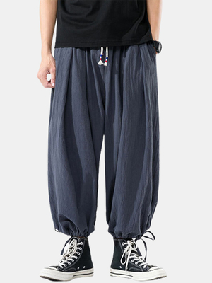 La description: Type de fermeture: cordon de serrage, taille élastique Décoration: poche Type dajustement: coupe ample Matériel: lin Forme: Solide Scène: loisirs, maison, occasionnel Saison: printemps, été, automne Taille: XXXL, XXL, L, S, XL, XXXXL, MLigne dattente: mi-hauteur Style: Vintage, DécontractéÉpaisseur: régulière Emballage inclus:1 * pantalon