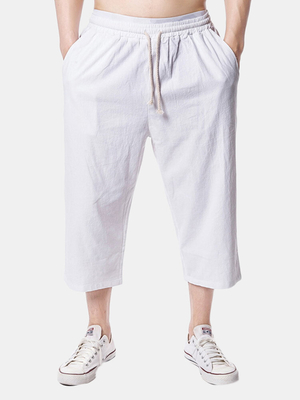 Pantalon De Plage Décontracté En Lin Long Au Mollet