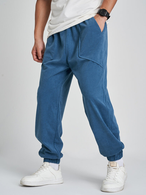 Pantalon En Velours Côtelé De Couleur Unie Pour Hommes Avec Cordon