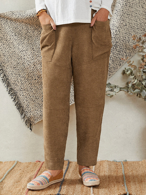 La description: Couleur: Kaki Type de fermeture : taille élastique Décoration: Poche Longueur: Longueur cheville Matériel: Polyester, Velours côtelé Forme: Solide Saison: Printemps, Été, Automne, Hiver Taille: 4XL, M, L, S, XL, 2XL, 3XLLigne dattente : régulière Style:Rétro, Simple, Vintage, DécontractéÉpaisseur : régulière Emballage inclus:1 * pantalon