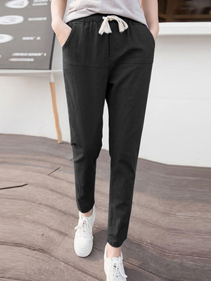 La description: Couleur: noir, bleu. Type de fermeture: cordon de serrage, taille élastique Décoration: Poche Longueur: Longueur cheville Coton Forme: Solide Scène: Loisir, Décontracté Saison: printemps, été, automne Taille: M, L, S, XL, 5XL, 2XL, 3XL, 4XLStyle: Travail, DécontractéÉpaisseur:Régulière Emballage inclus:1 * pantalon