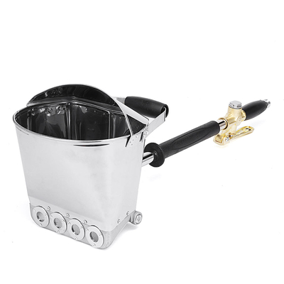 Caractéristiques: Nom: Pistolet pulvérisateur mural à main, pistolets pulvérisateurs, ciment à lair, stuc, trémie, outil de calfeutrage Modèle: A57003 Couleur: Sliver Matériel: inoxydable + laiton + caoutchouc Conception: demi-couverture Fonctionnalité:- Nouveau design avec demi-couvercle, dédié à pulvériser le haut du mur et le corps du mur en même temps.-Convenient, efficace et rapide.- Convient pour le revêtement par pulvérisation de pâte fine comme les pâtes de ciment professionnelles, les pâtes de chaux et les mortiers étanches.- 4 trous de 17 mm permettent une pulvérisation rapide et uniforme sur le mur, permettant ainsi déconomiser du temps et de la colle.- Enregistrer les matières premières, fondamentalement pas datterrissage gris.- Coopérer avec la pompe à air ou le compresseur dair en appuyant sur la poignée pour pulvériser.