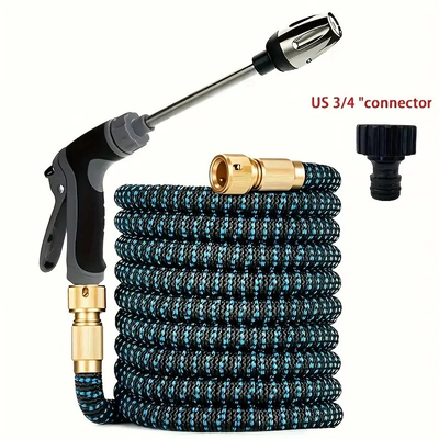Premium Expandable Magic Car Wash Hose with Long Rod Spray Gun High Pressure Telescopic Design with 3/4 Inch Diameter and US Standard Connector Ideal For Car Cleaning Watering Plants Pet Washing