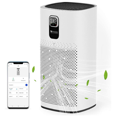 Caractéristiques principales:● Purificateur dair à haute efficacité: La technologie de purification UPV 2.0 permet à la valeur CADR de A9 datteindre 460m³ / h.● Contrôle intelligent : Surveillez et contrôlez votre purificateur dair domestique nimporte où avec lapplication Proscénique Home. Fonctions: programme, minuterie, réglage de la vitesse du ventilateur, verrouillage du bébé, mode veille, etc. Il prend également en charge la commande vocale Alexa pour allumer / éteindre votre purificateur dair. ● Technologie de purification HDOF: La technologie de purification HDOF avec filtration en 4 étapes, qui contient un filtre primaire, H13 HEPA, du charbon actif et des ions nano-argent, elle capture 99, 97% des particules en suspension aussi petites que 0, 3 μm, telles que la poussière, les squames danimaux, la fumée, le pollen, les odeurs, etc. 100% sans ozone.●Écran LED et affichage de la qualité de lair: Avec la conception spéciale du capteur infrarouge PM2.5, il peut détecter la qualité de lair et afficher avec quatre couleurs différentes. La lumière verte, la lumière jaune, la lumière orange et la lumière rouge représentent respectivement une lumière excellente, bonne, légèrement polluée, fortement polluée. ● Mode veille + mode automatique et 4 vitesses réglables: En mode veille, A9 fonctionne à 25 d B, ses lumières peuvent être éteintes pour que vous puissiez mieux dormir. En mode automatique, surveillance en temps réel de la qualité de lair et ajustez automatiquement la vitesse d