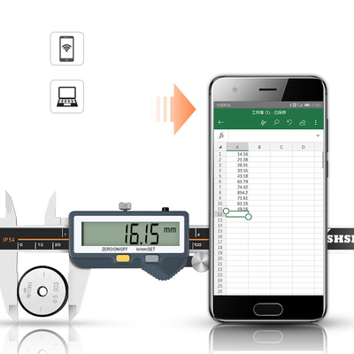 Caractéristiques: Bluetoothintégré pourenvoyerdesdonnéesà un ordinateur portable Niveaudeprotection IP54Écrandaffichagenumériquederésolution 0, 014fonctionsdemesure: Mesureexterneetinterne, mesure de profondeur et mesure de hauteur Létrieralafonctiondarrêtautomatique lorsquil est stationnaire pendant plus de 5 min Spécification: Plagedemesure Résolution Précision 0-150 mm 0.01 mm±0, 02mm 0-200 mm 0.01 mm±0, 03mm 0-300 mm 0.01 mm±0, 04mm Typedebatterie:1x 3VCR2032 batterie au lithium Températuredefonctionnement:0°C