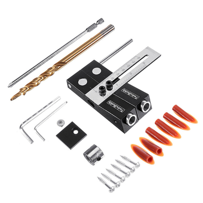 Descriptions: Systèmedegabaritdetroude poche magnétique réglable Ensemble de foret de 10 mm Guide de forage de localisateur de trou oblique Kit de poinçonnage pour le travail du bois Caractéristiques: Nomduproduit Systèmedetrousdepoche Numérodemodèle E64630 Matériel Alliagedaluminium Couleur Noir Tailledeforet 10mm Têtedetournevis Traverser Caractéristiques:1. Conceptionmagnétique, glissementpasfacile pour le serrage. 2. Adjustable hole width design, you can easy to drill different width hole.3. Fabriquéenalliagedaluminiumet douille de forage en acier trempé, durable à utiliser. 4. Including step drill, screwdriver bits & screws plugs. Emballageinclus:1x Gabaritdetroudepoche 1x Foretétagéde 10mm 1x Emboutdetourneviscruciforme 1x Setdaccessoires