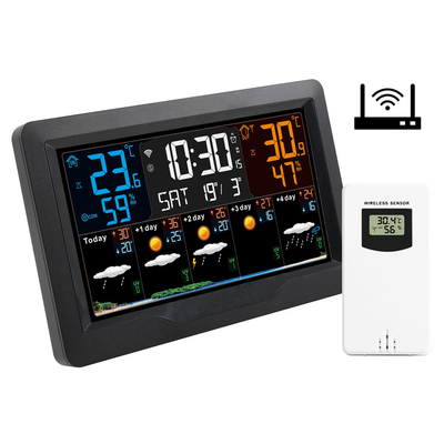 Tuya Smart Wi Fi Weather Station EU Plug Indoor Outdoor Thermometer Hygrometer with Color Display Screen APP Remote Control Alarm Clock Setting Humidity Temperature Sensor Device ...