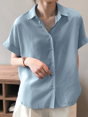 ZANZEA Women Cotton Linen Blouses Solid Button Lapel Roll Sleeve Short Sleeve Casual Shirt Plus Size