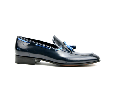 Votre propre mocassin à pampilles bleu brillant personnalisé pour hommes, 100% fait main en Italie. Chaussures idéales pour les mariages et les événements spéciaux.
