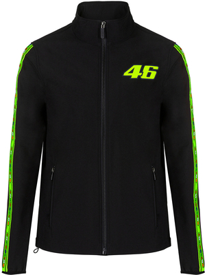 Veste VR46 Tapes Softshell La veste SOFTshell VR46 Tapes Est votre compagnon idéal par temps pluvieux et venteux.fonctionnalités: col haut 2 poches latérales avec fermeture éclair imperméable à l'eau et respirant imprimer sur la poitrine bandes sur les épaules fermeture éclair avant