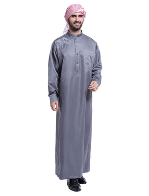 Arabe Hommes Robe Col Montant à Manches Longues Broderie Abaya