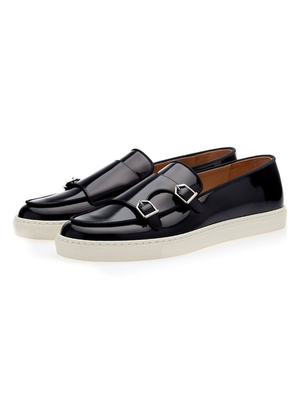 Baskets Homme Cuir Verni Boucle Bout Rond Basses Chaussures Noir & Chaussures > Chaussures homme > Baskets de homme & Chaussures de Skate