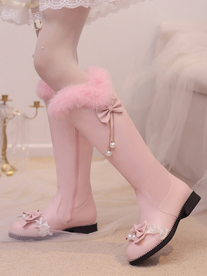 Bottes Lolita Sweet Bows roses Bout rond Chaussures Lolita en cuir PU & Vêtements de Lolita > Chaussures Lolita