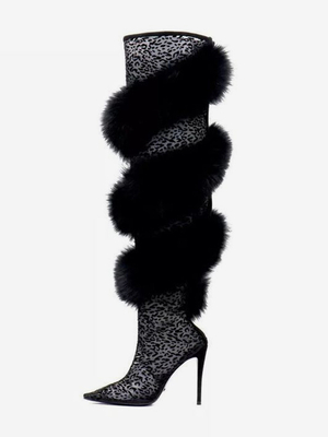 Bottes noires au-dessus du genou avec détails en fausse fourrure et talons hauts Bottes sexy au-dessus du genou & Chaussures > Chaussures femme > Bottes > Cuissardes