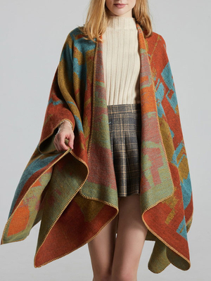Cape Poncho Femme Echarpe Imprimé avec Manches Longues Bicolores Poncho Femme & Mode Femme > Vestes et Manteaux > Poncho & Cape