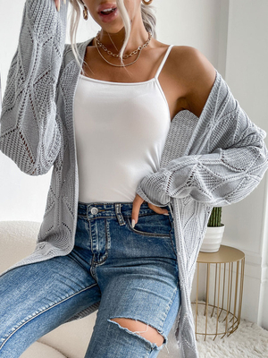 Cardigans Pull Femme en Côtelé avec Manches Longues Unicolore & Mode Femme > Pull-over > Cardigan