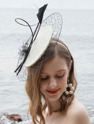 Chapeau de plumes pour femmes en chapeau de tulle blanc; accessoires de cheveux vintage Déguisements Halloween & Déguisement > Costume > Costumes Vintages > Chapeau Rétro& Coiffure